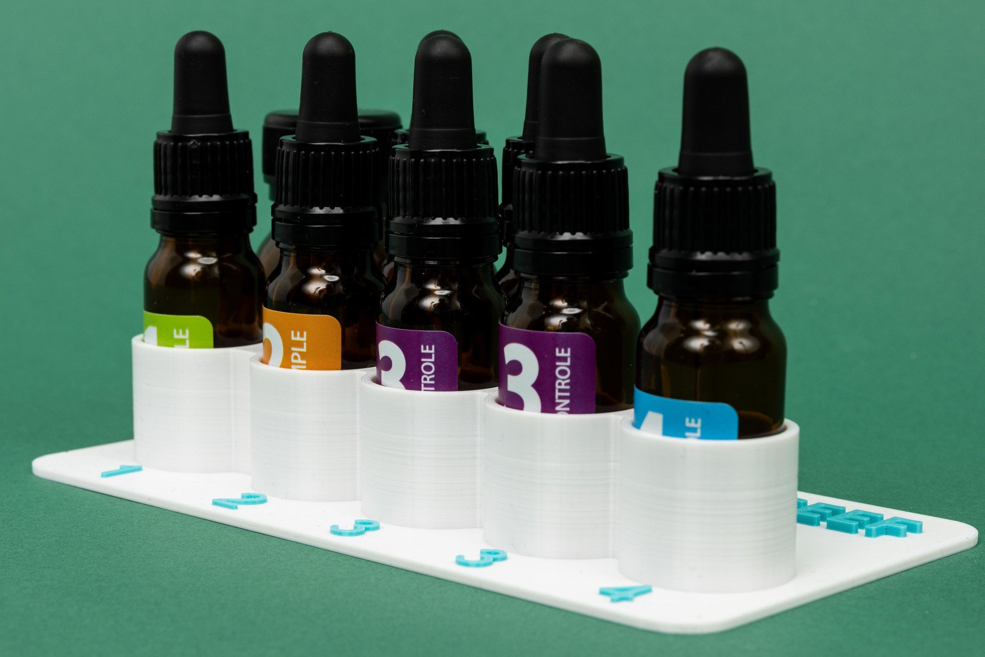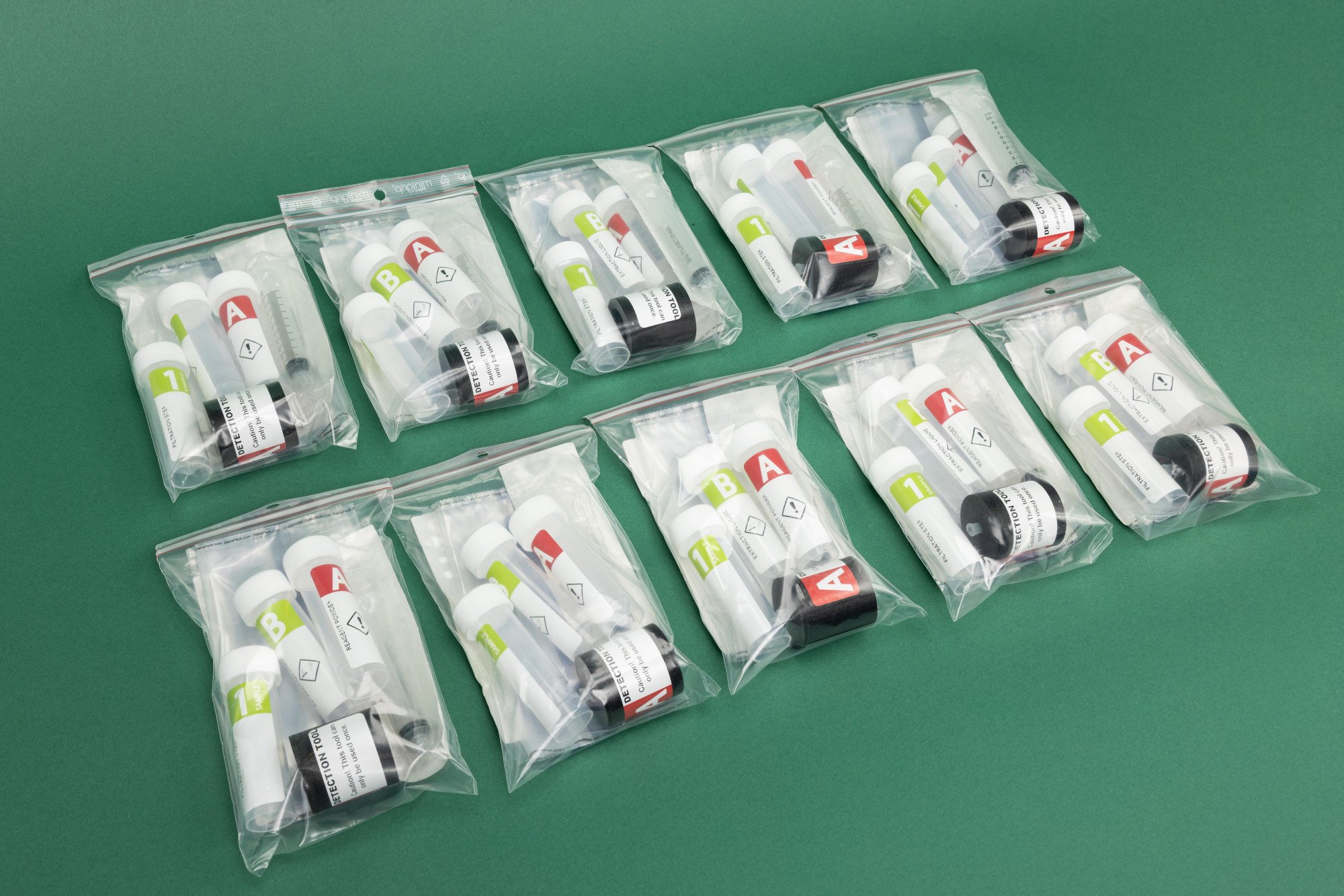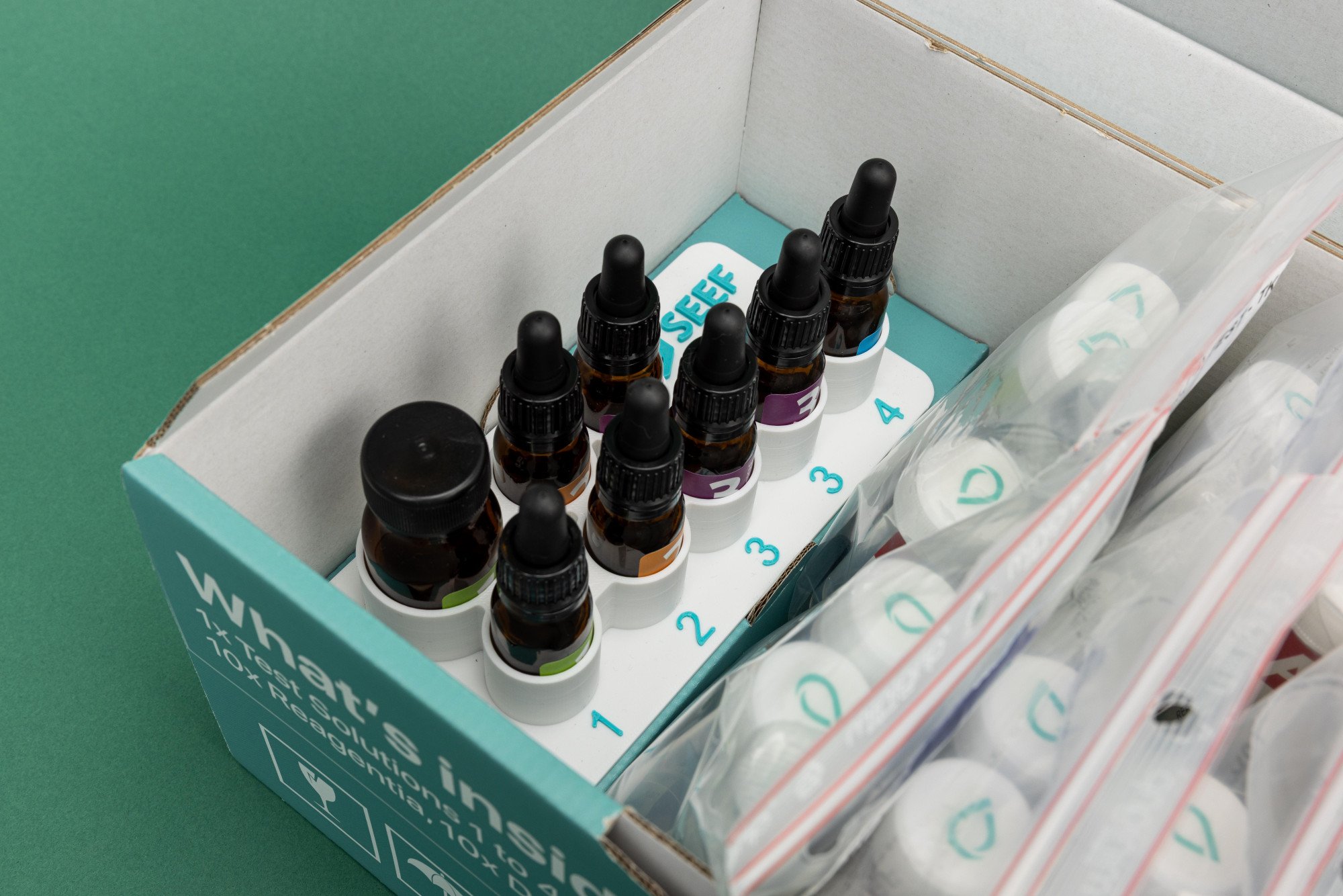 - 1 tray vloeistoffen: Bevat alle benodigde reagentia voor het uitvoeren van 10 testen.